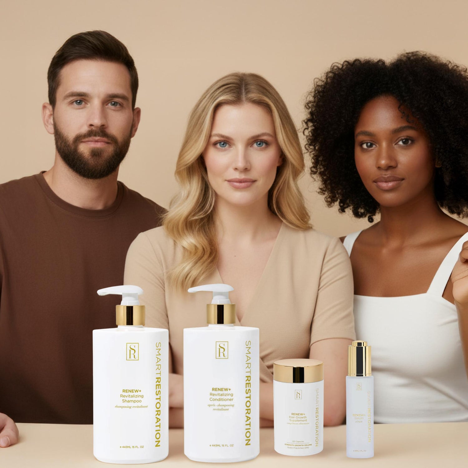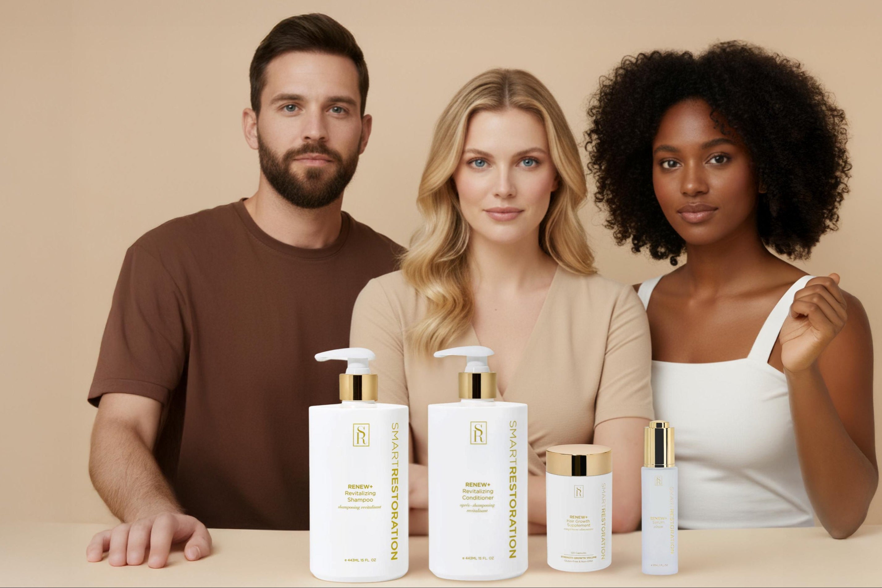 Absolutely! Our formulations, including Smart Restoration Rx, are designed to support a variety of hair types and needs. This spray targets hair health concerns, helping to promote growth and reduce hair loss.